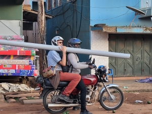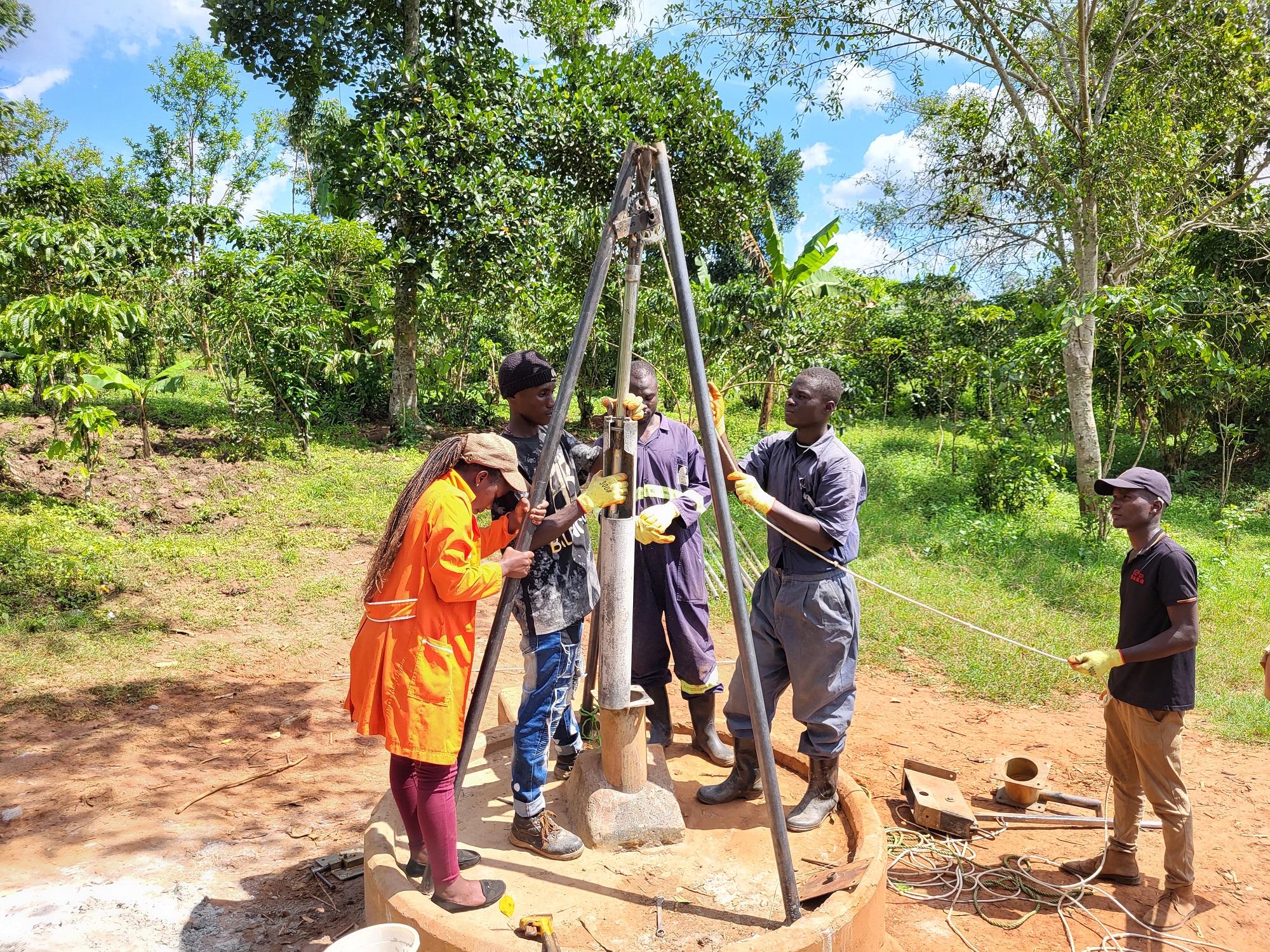 Um die Arbeit des Hochhebens und Absenkens der Pumpleitung zu vereinfachen, bauten wir uns aus einigen Abfällen ein Dreibein und eine Sandpumpe, um Sand aus versandeten Brunnen herauszuholen, offensichtlich Innovationen in Uganda, weil das niemand kannte, aber dann doch sehr geschätzt wurde.