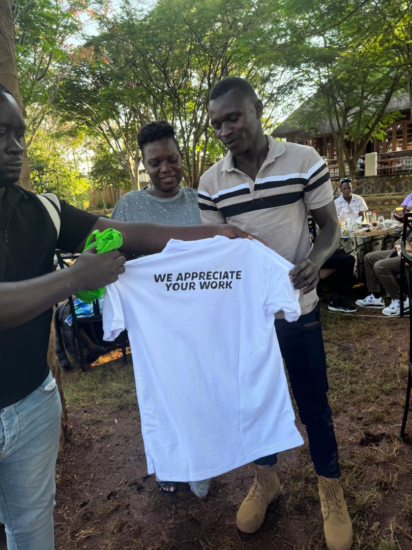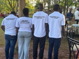 David, Standortleiter der School for all Nateete und Verantwortlicher für den Auf- und Ausbau in Kassanda, Kakumiro und Kasambya, wurde als Mitarbeiter des Jahres gelobt. Owen, der den neuen Standard Kasambya mit seinem Handwerkerteam gebaut hat, wurde für seine gute und rasche Umsetzung der Bauarbeiten geehrt. Und Ivan wurde auch gelobt. Er ist Standortleiter in Nakaziba, für sein gutes Management des Colleges of Practical Skills und seine kommunikative und freundliche Art zu führen.