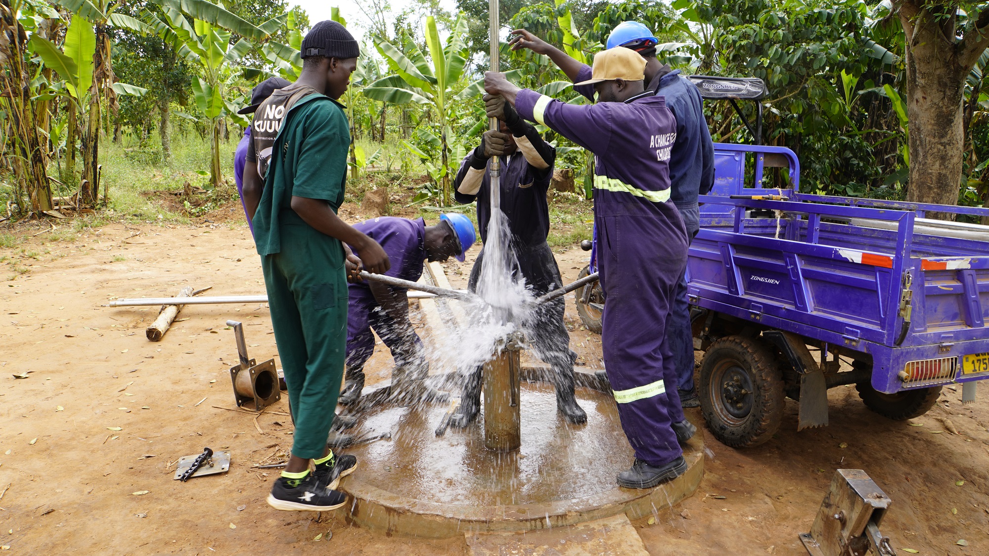 Unser letzter Einsatz führte uns nach Bukwiri, wo auf einem neu angekauften Grundstück ein Brunnen errichtet werden sollte. Der Brunnen wurde von einer lokalen Firma gebohrt und wir waren dabei nur Zuschauer, um über die Herstellung von Bohrbrunnen zu lernen.