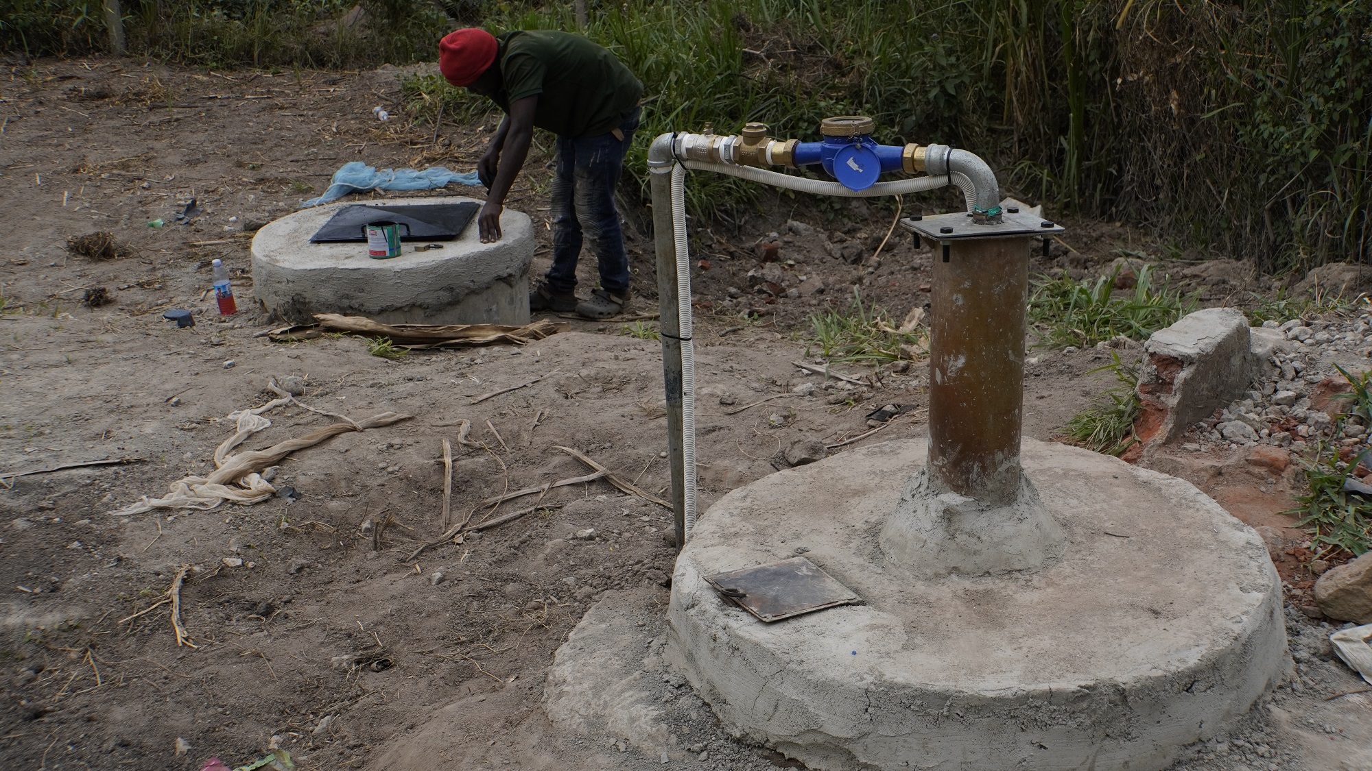 Unsere erste praktische Aufgabe war die Neuerrichtung einer Quellfassung auf dem Schulstandort in Kalangaalo. Bis dahin wurden die Schule und das nahegelegene Dorf nur mit in Tanks gesammeltem Regenwasser und mit ungereinigtem Flusswasser versorgt, das aus einem nahegelegenen Bach entnommen und hochgepumpt wurde.